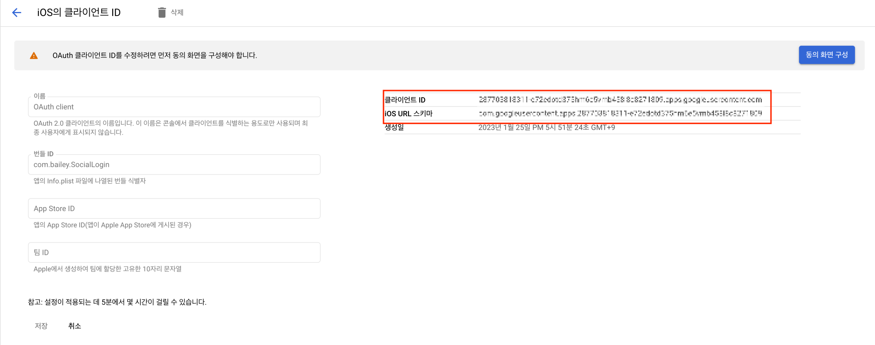 4. "클라이언트 ID"와 "iOS URL 스키마" 두가지 정보를 기억해둔다
