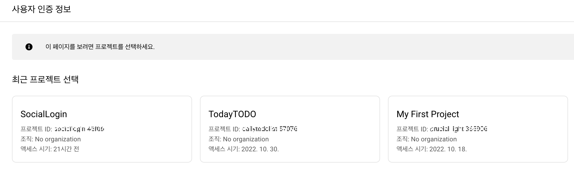 2. 설정했던 프로젝트 선택